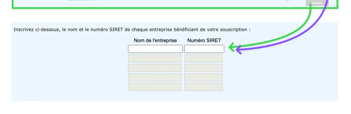 ⚠️ Vous devrez préciser pour chaque société son numéro SIRET et le montant investi (cliquez sur la case “Détail” en dessous du montant saisi).